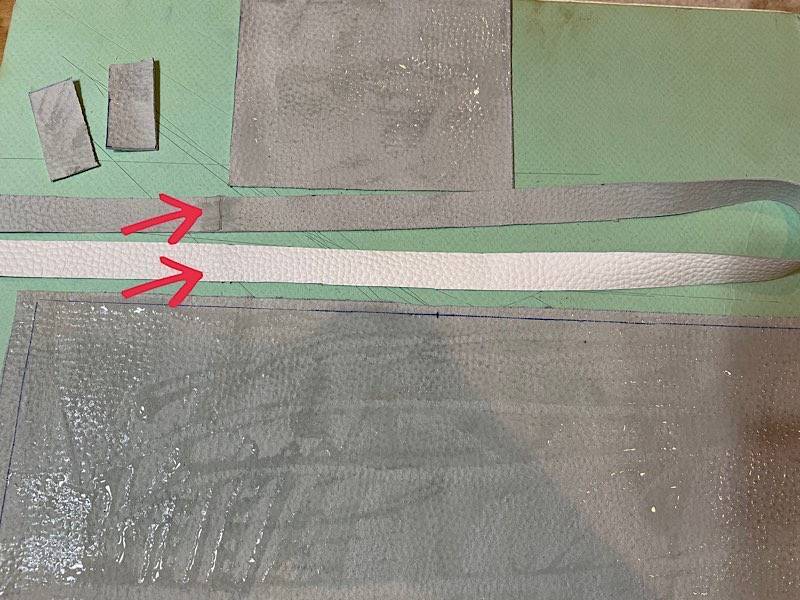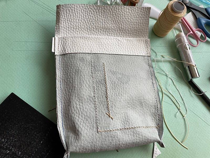 結局、表に返した後に余分な革は内側に織り込んでかぶせる感じで縫い付けることにしました。(後で画像で説明します。)